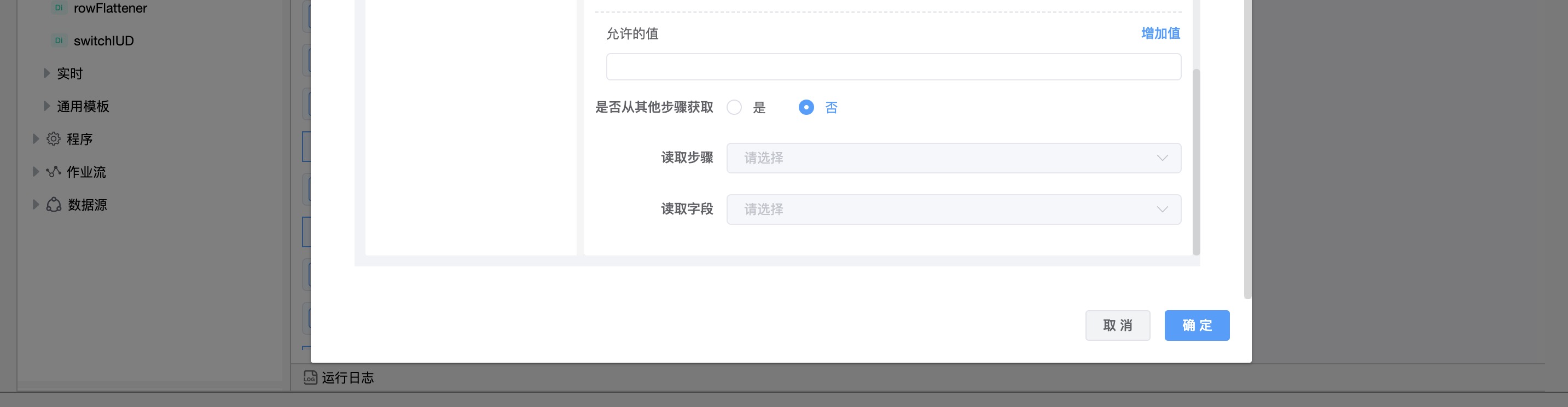 是否从其他步骤获取 启用此选项以从转换中的另一个步骤获取数据。