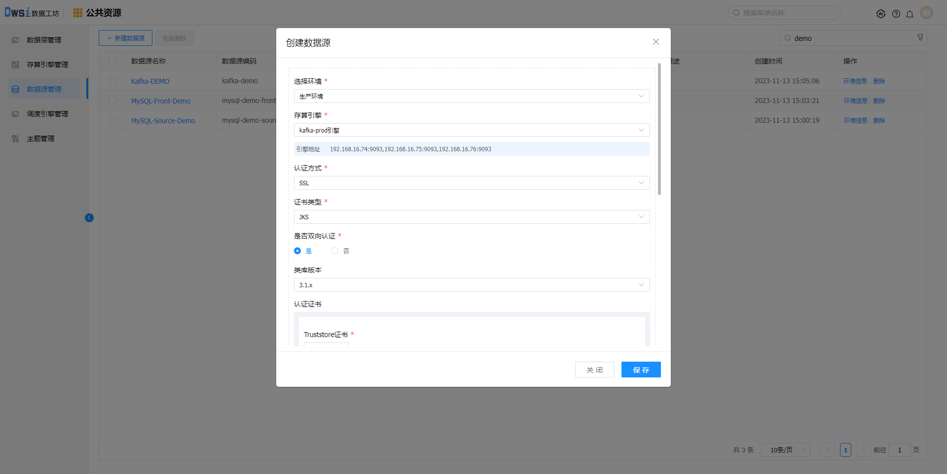 5. 重复上述步骤,创建kafka的存算引擎。
