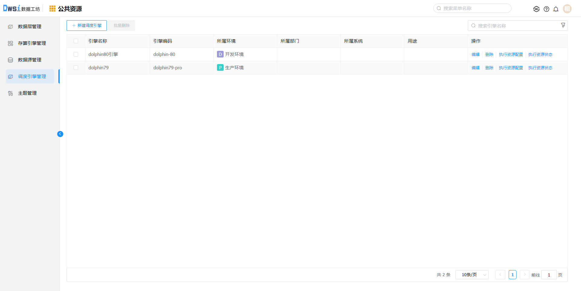 4. 重复上述步骤,创建生产环境的调度引擎。