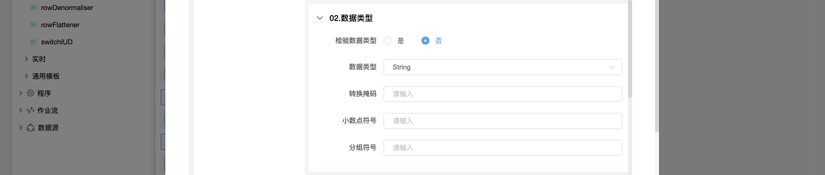 | 发送false数据给步骤 | 指定条件为false的行将发送到此步骤。 |