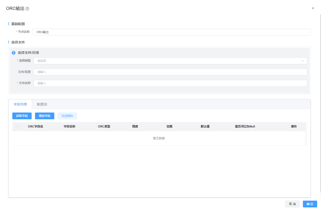 | 文件名称 | ORC文件要输出的路径及ORC文件名 |