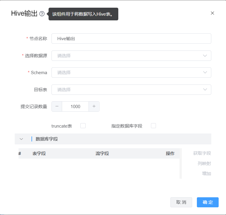 功能介绍:Hive输出用于将数据写入Hive表