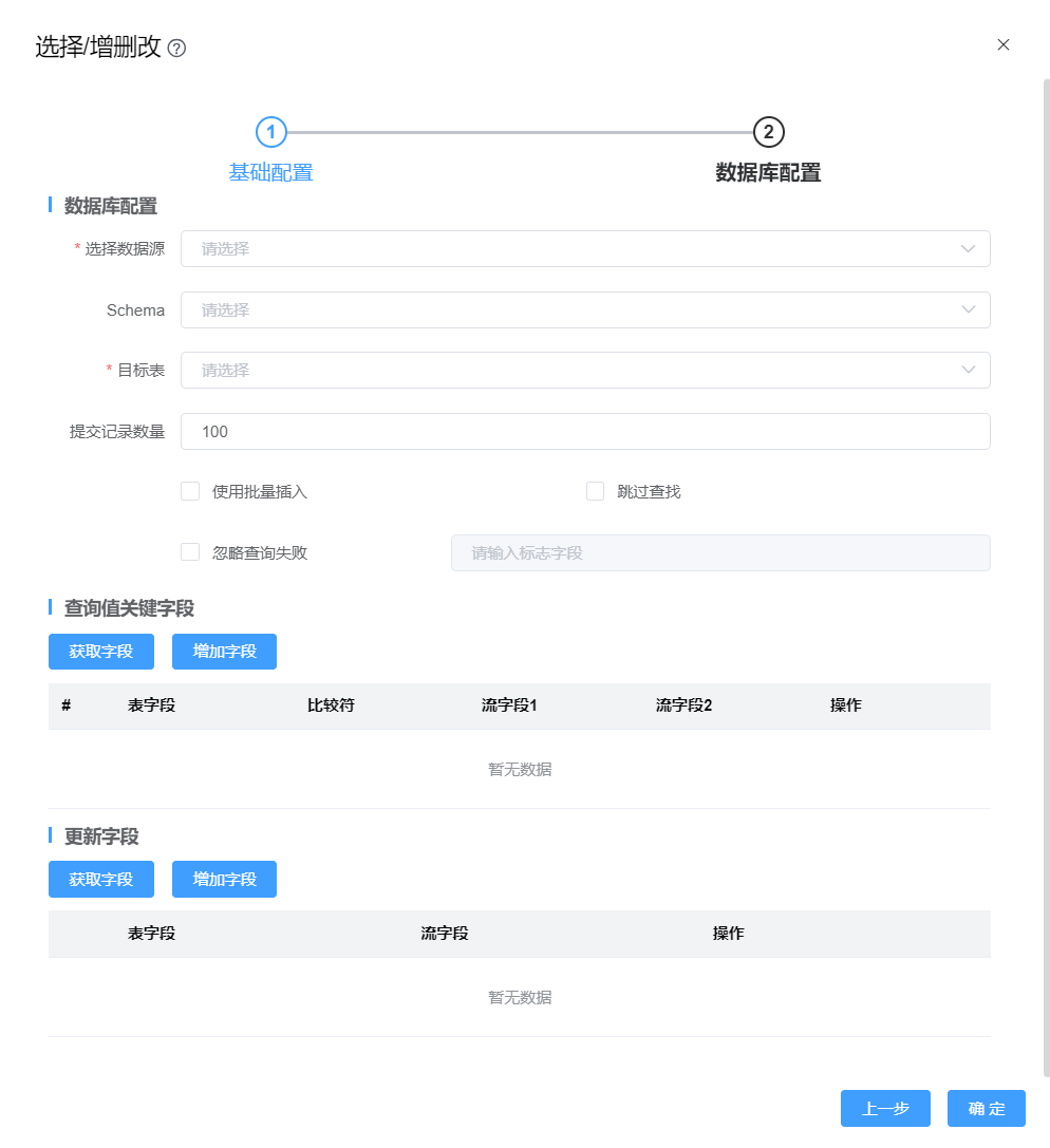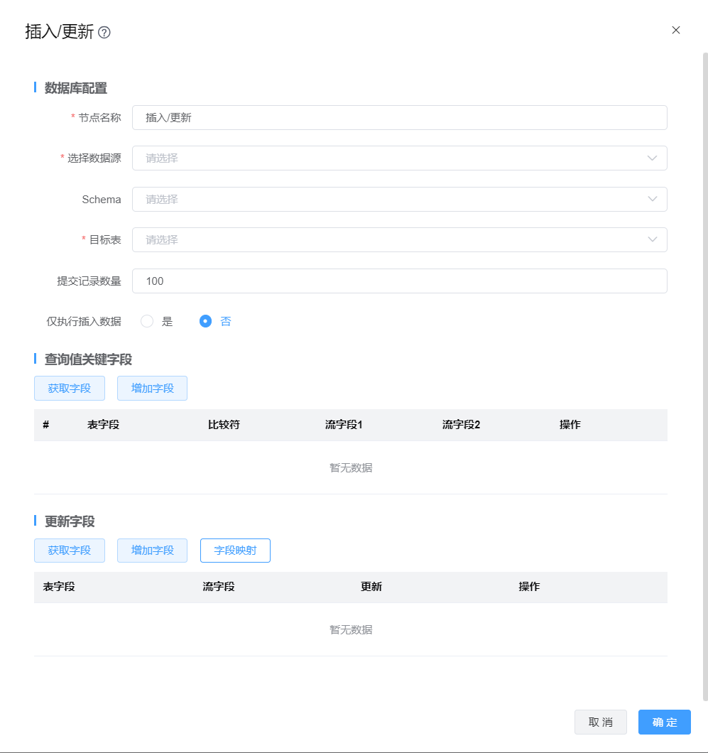 | 仅支持主键表更新 | 选择“是”时,“字段设置”中才允许“删除”操作,反之不允许。 |