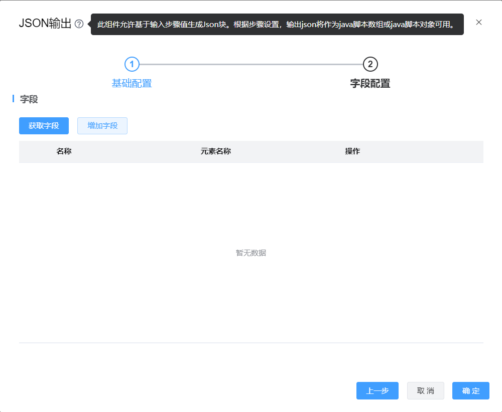 | 元素名称:结果流中字段输出到json文件中对应字段名称 |