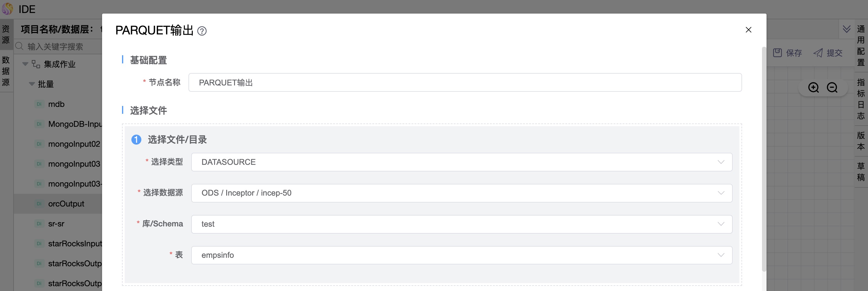 | 文件名称 | Parquet文件要输出的路径及Parquet文件名 |