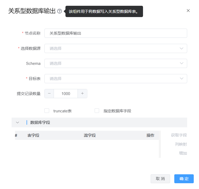 功能介绍:关系型数据库输出用于将数据写入关系型数据库表