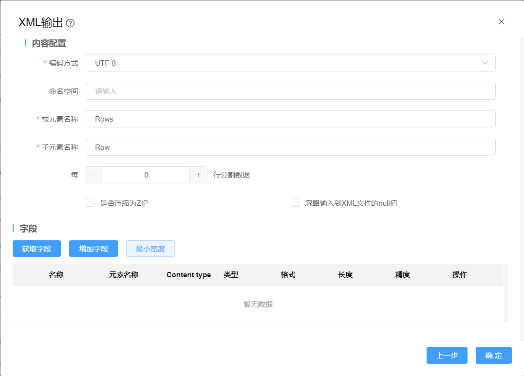 | 内容字段 | 名称:设置要在输出流中显示的字段名称 |