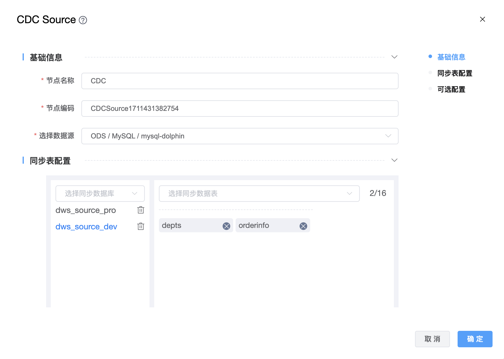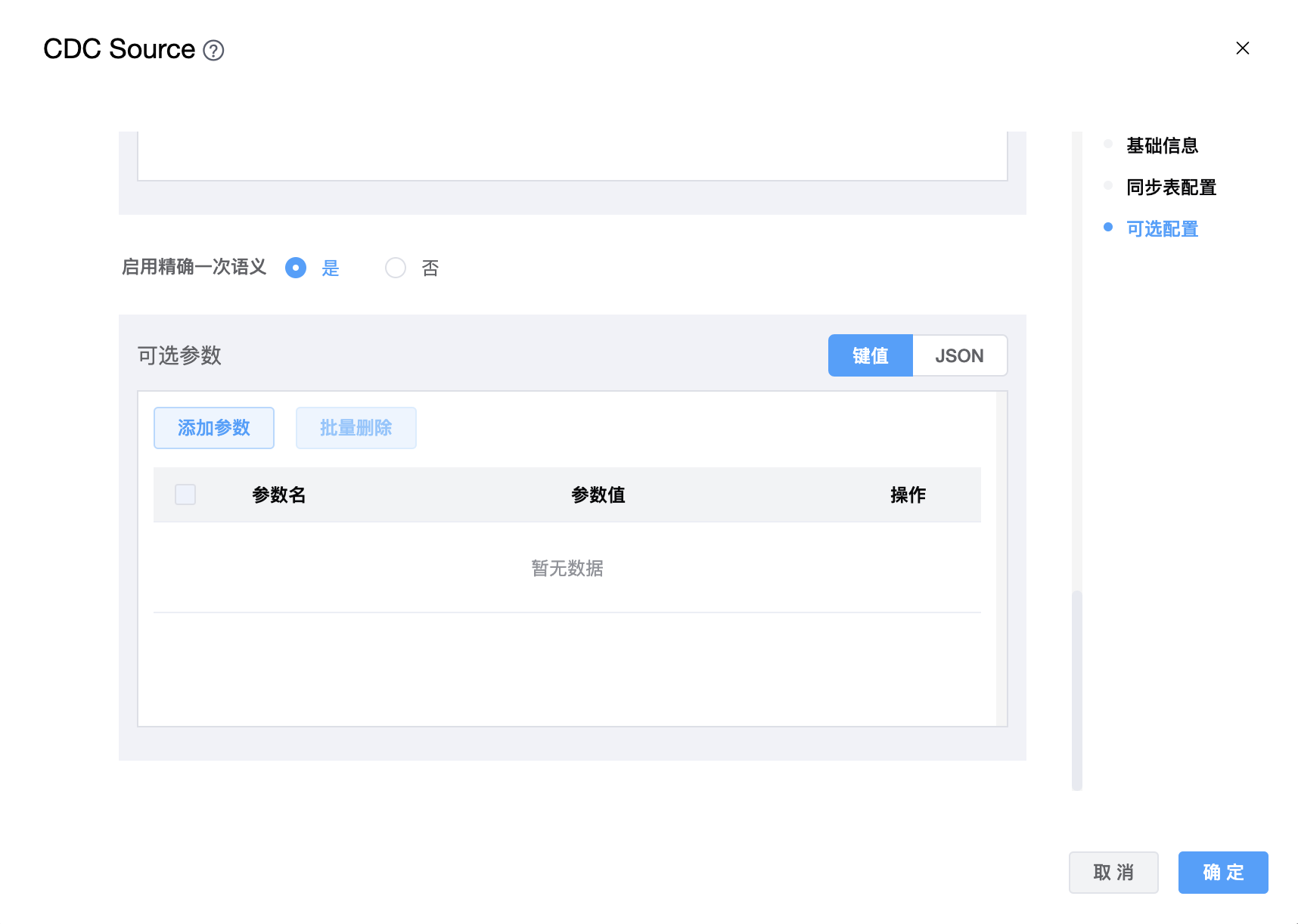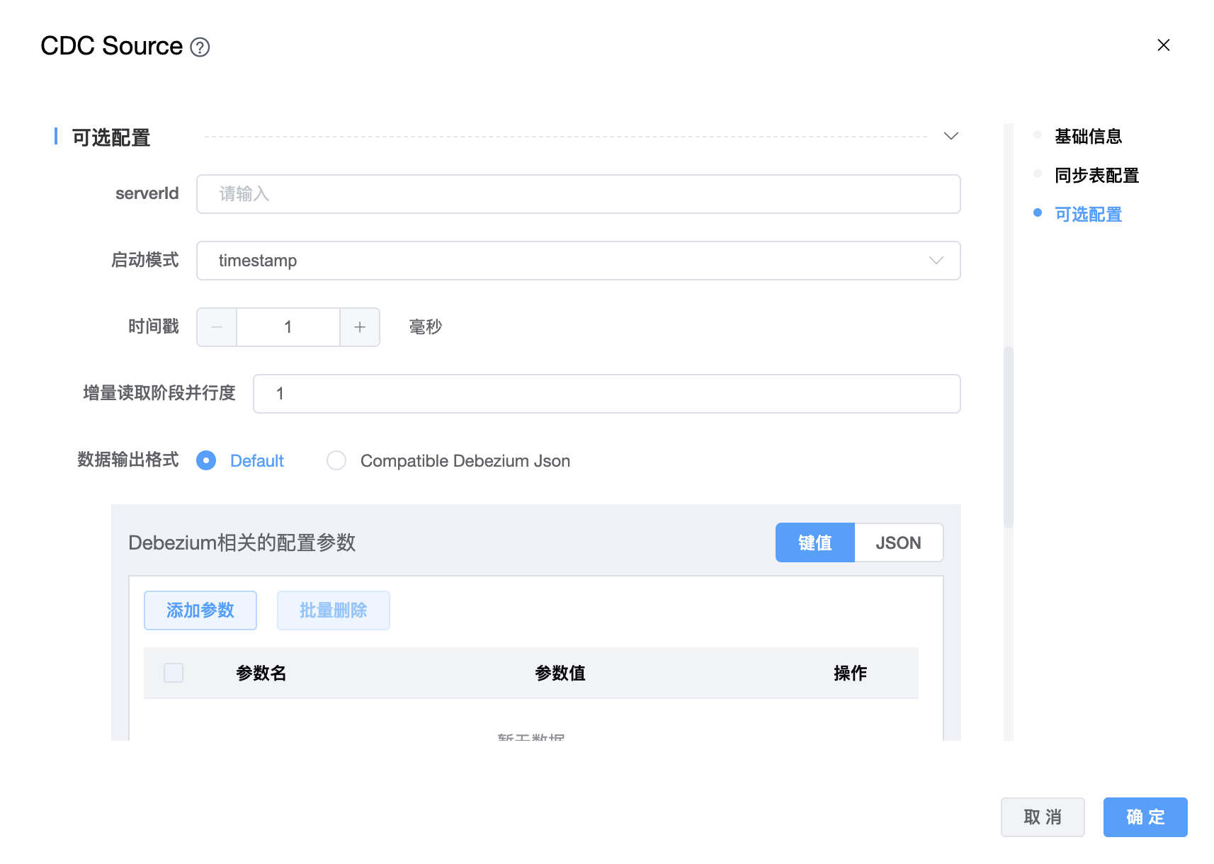 可选参数 CDC 其他参数,用户可以根据需求进行配置。