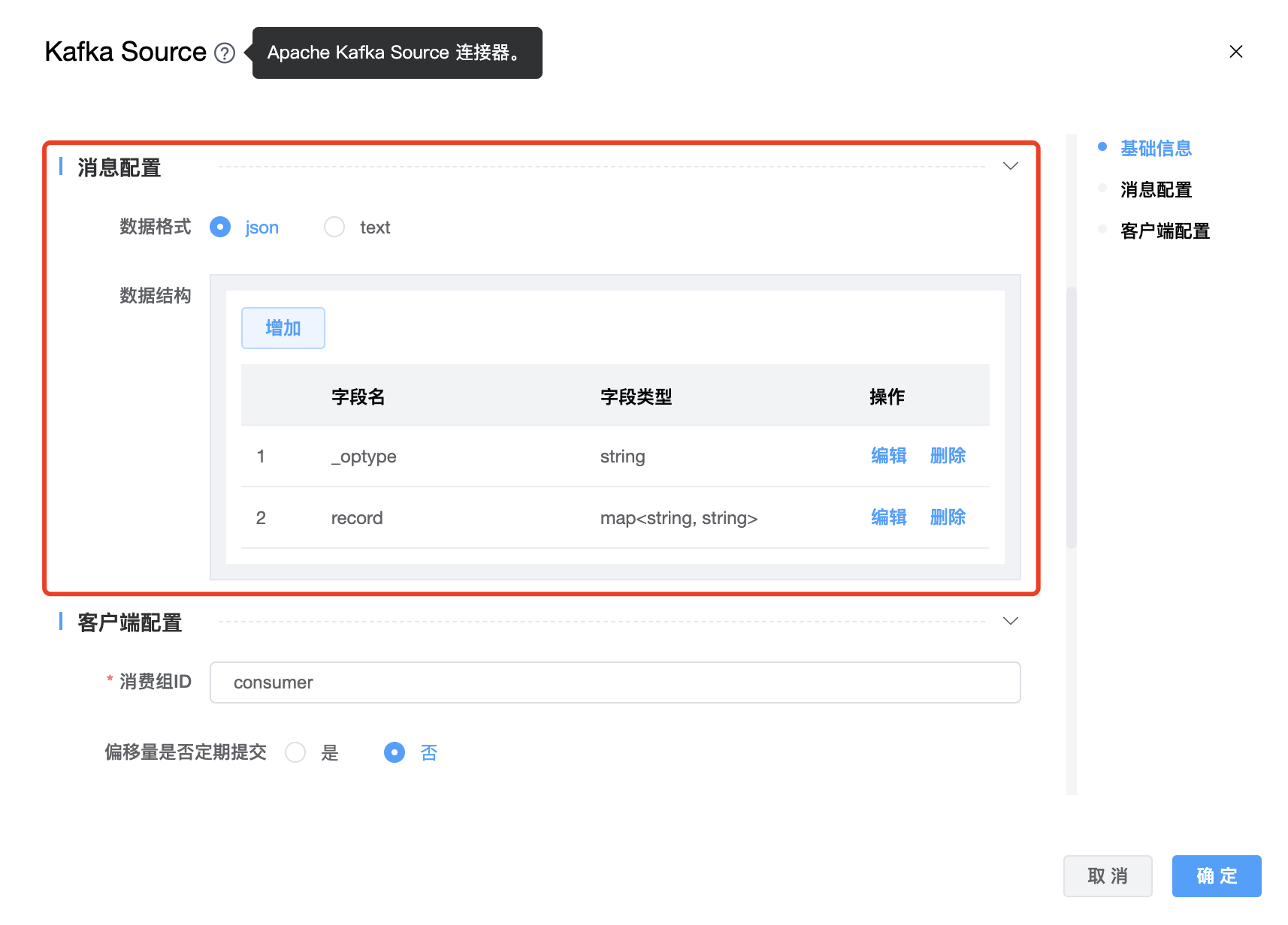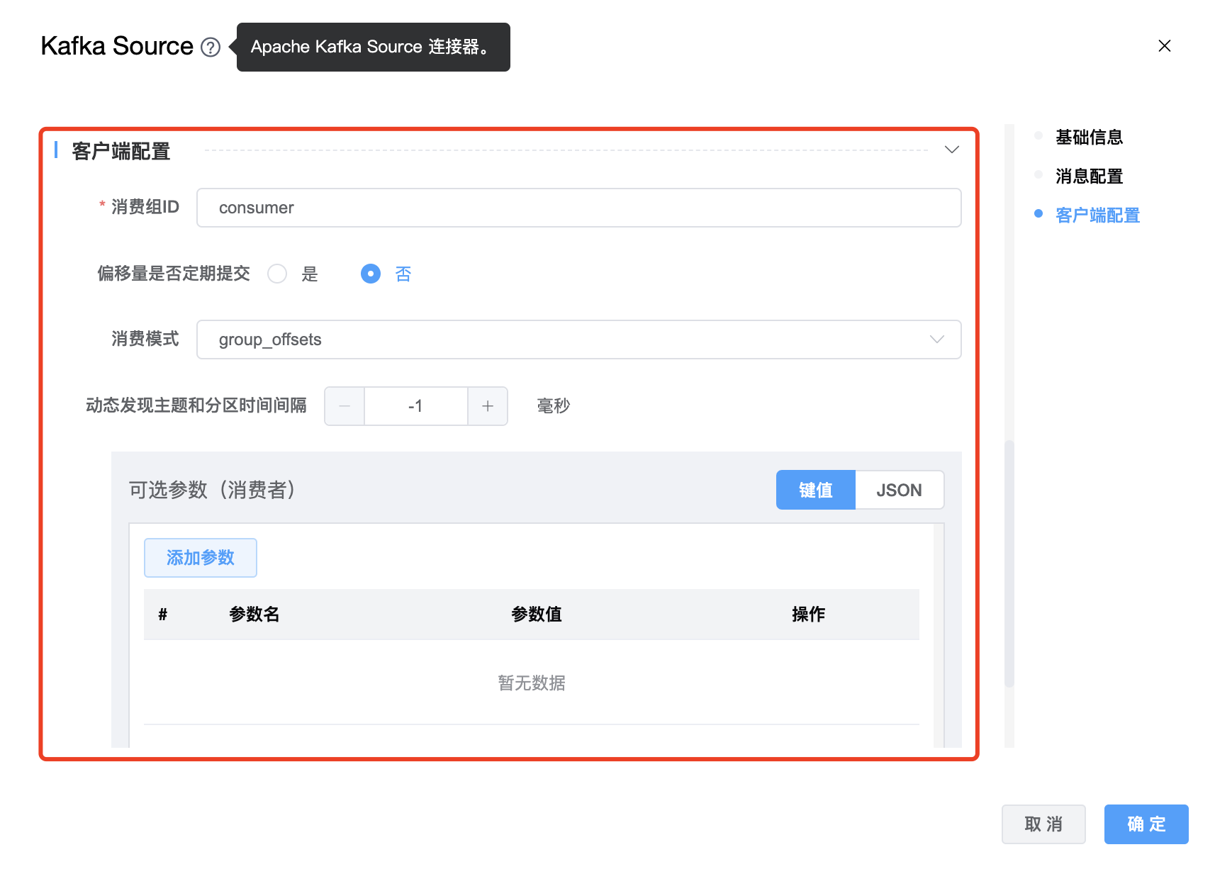 可选参数 Kafka Source 的其他参数,用户可以根据需求进行配置。