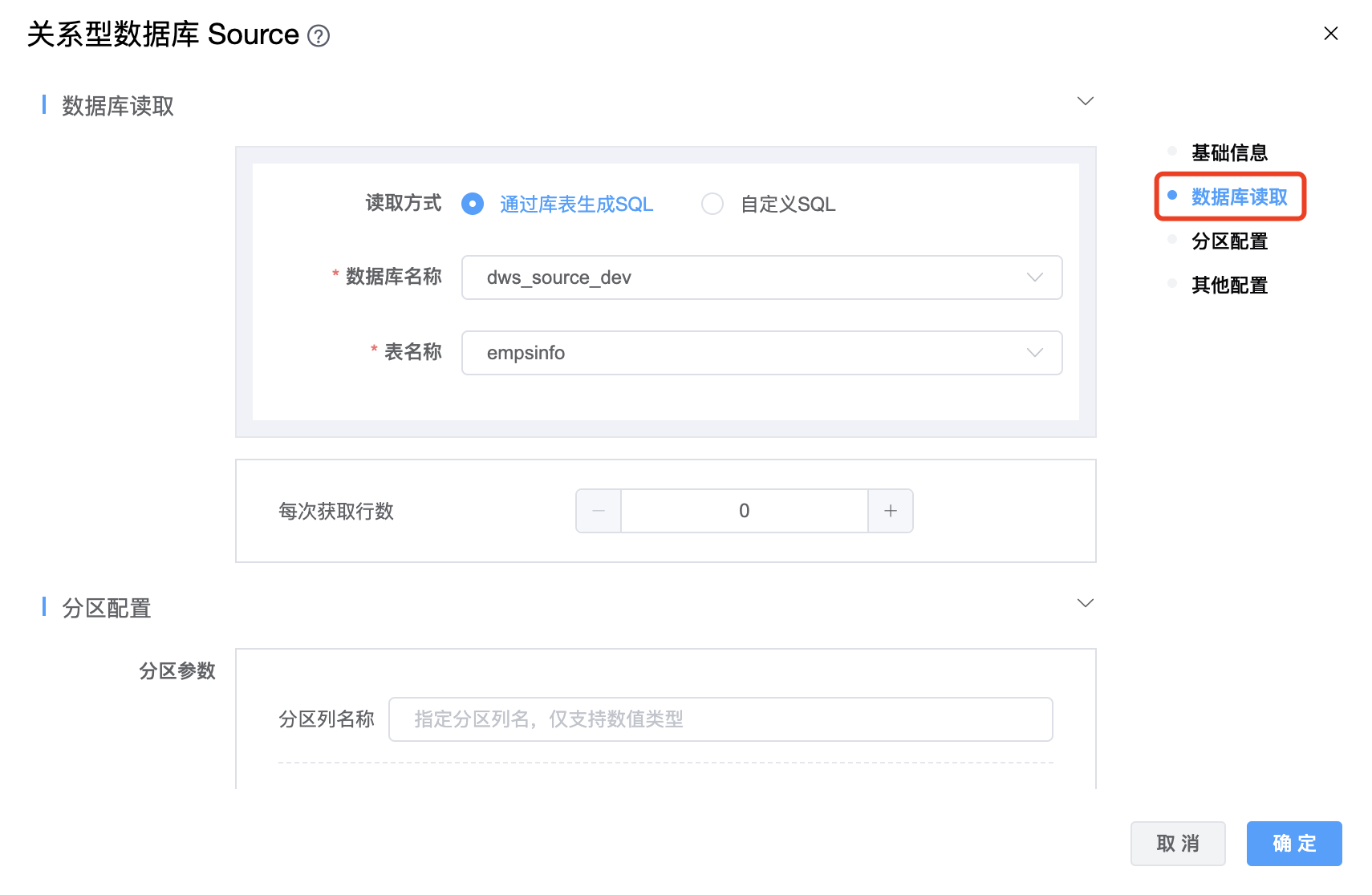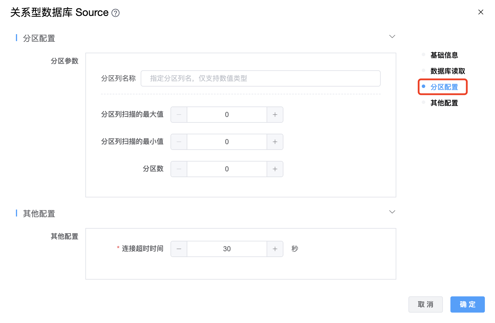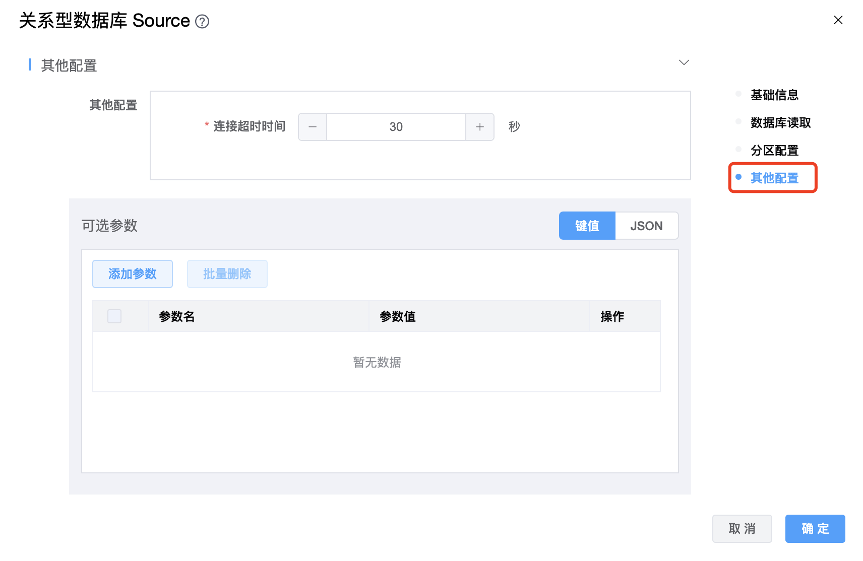 可选参数 关系型数据库 Source 的其他参数,用户可以根据需求进行配置。