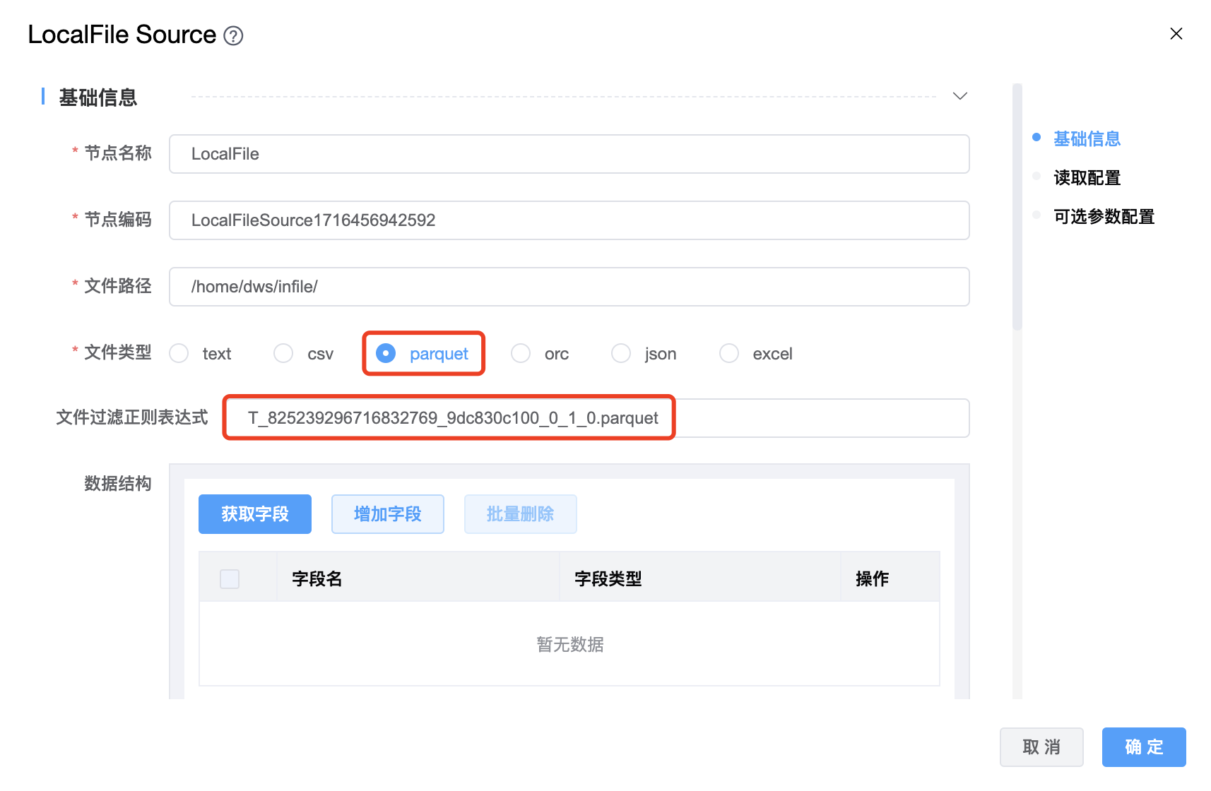 功能介绍:LocalFile 连接器。用于从本地文件系统读取数据。