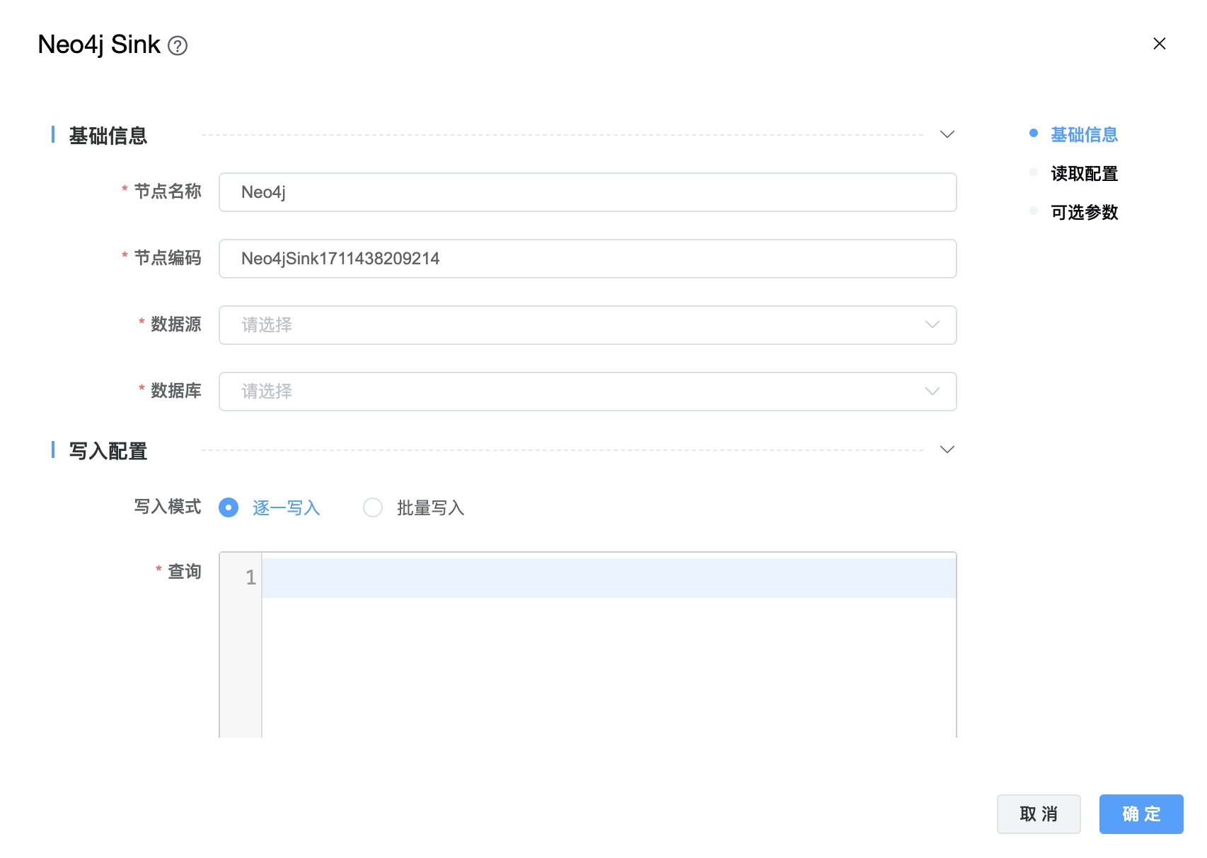 | 数据源 | 从下拉选项中选择列出的当前项目已经关联的 Neo4j 数据源。 |