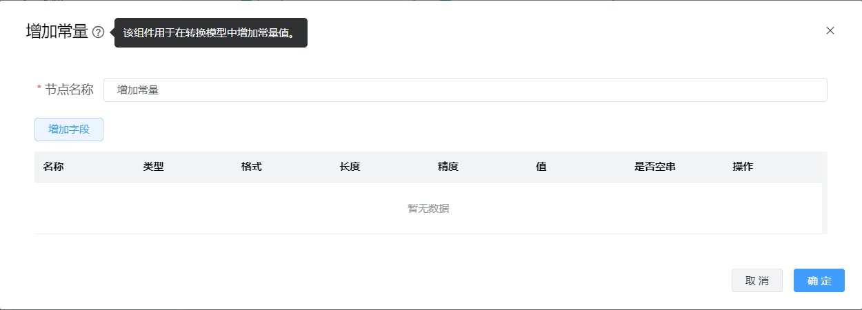 功能介绍:增加常量用于在转换模型中增加常量值,往输出流中增加常量字段。