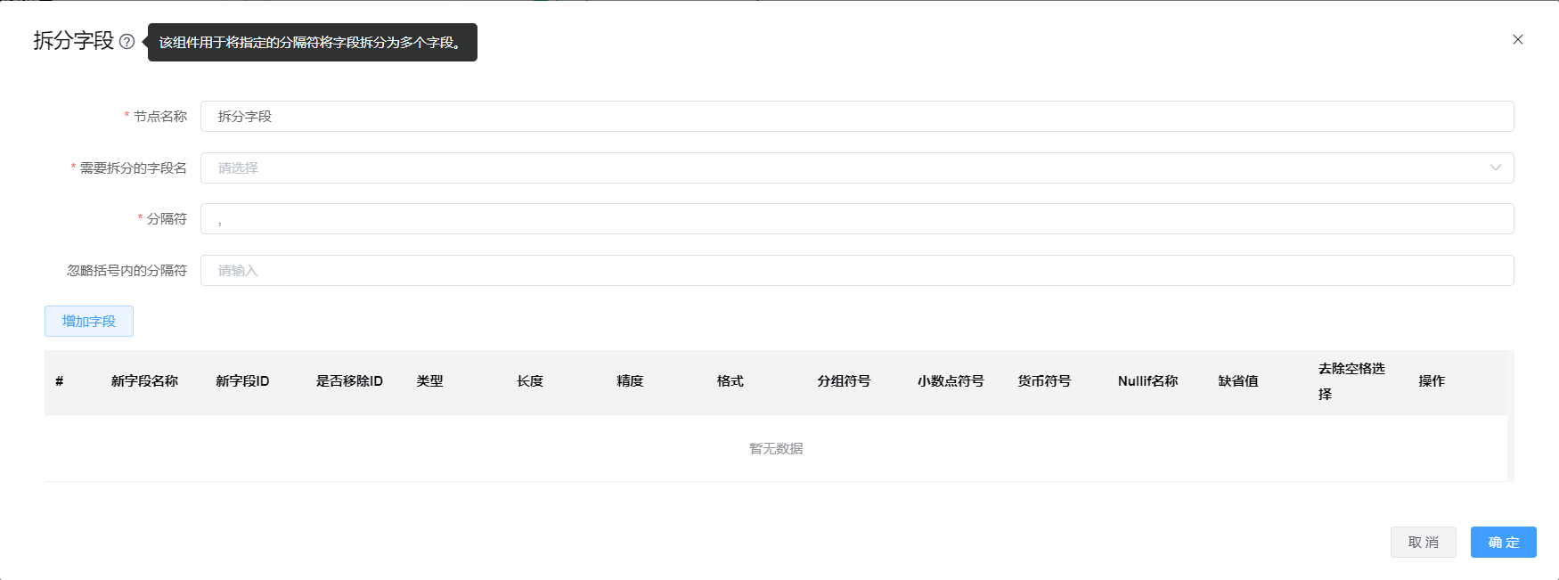| 需要拆分的字段名 | 指定要拆分字段的名称 |