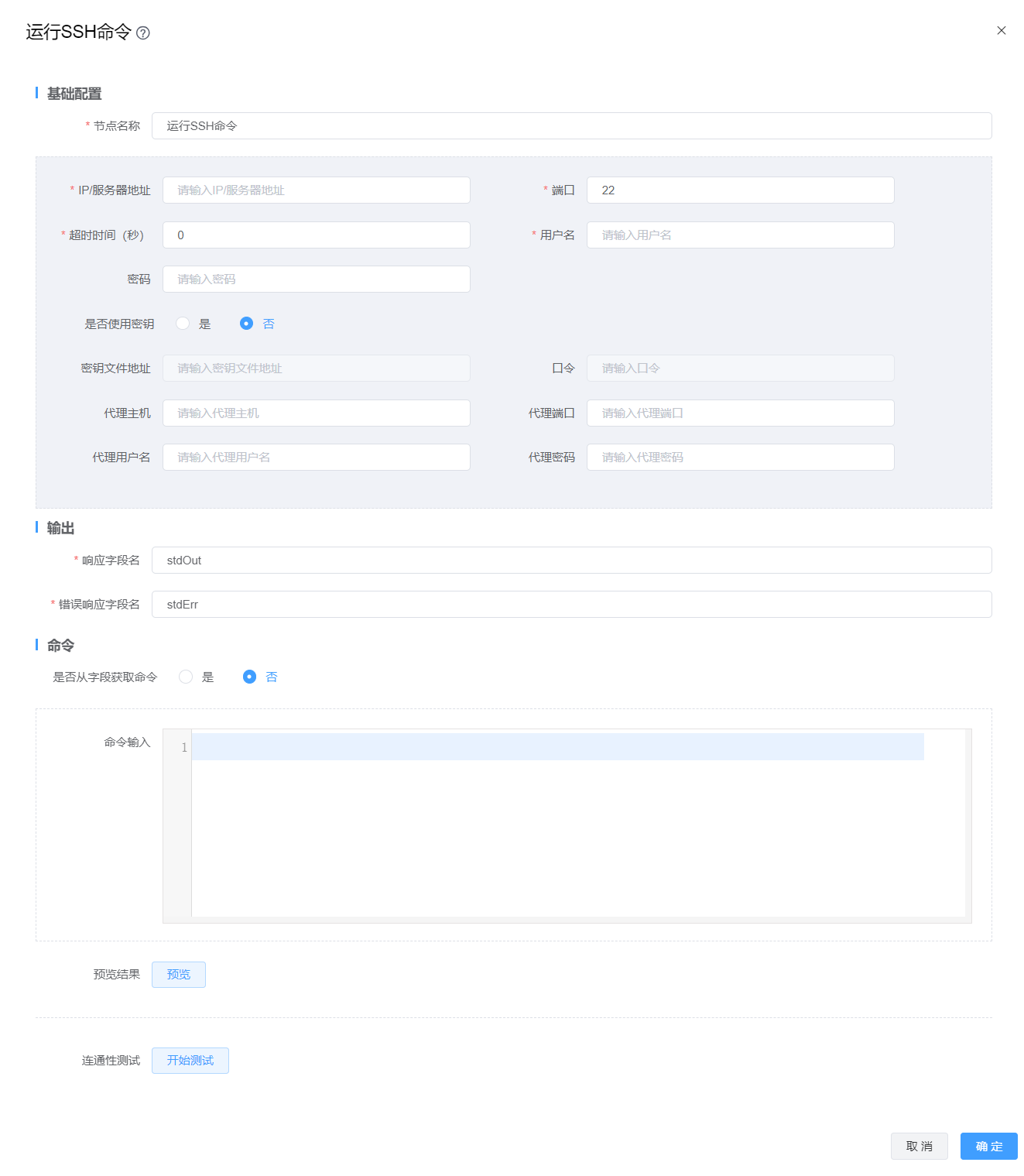 | 是否从字段获取命令 | 是否从前置步骤输出流中获取包含执行命令字段名称 |