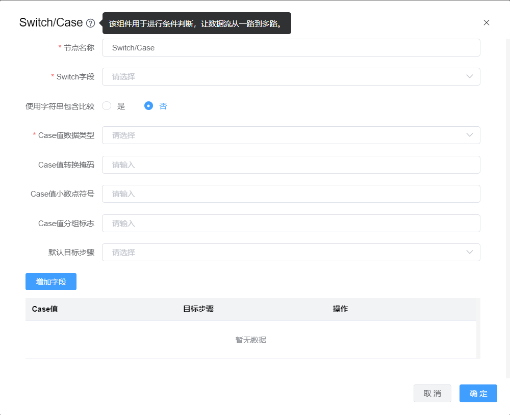 | Case值数据类型 | 指定Case值数据类型,保证Switch值类型与Case值一致 |