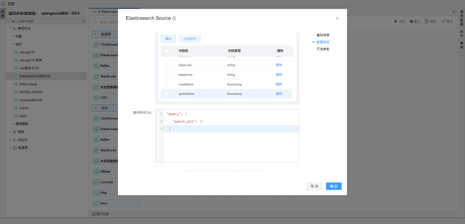 • 配置"Elasticsearch数据源"组件属性