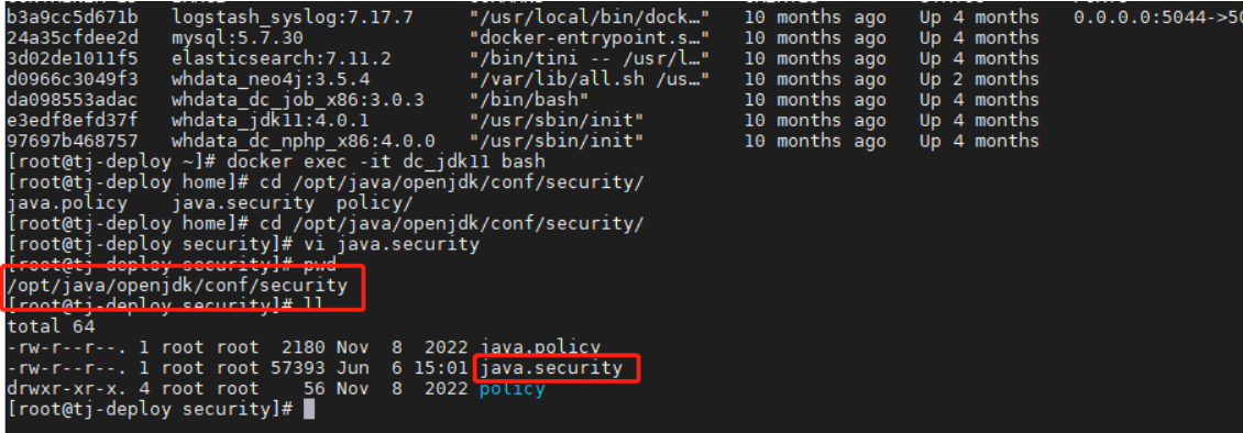 该文件一般在/opt/java/openjre/conf/security/ 中,如下图所示: