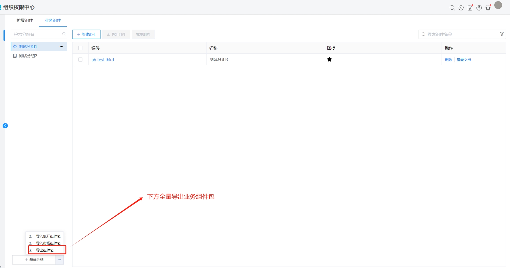 1.选择下方导出组件包全量导出,或者按分组导出分组组件包。