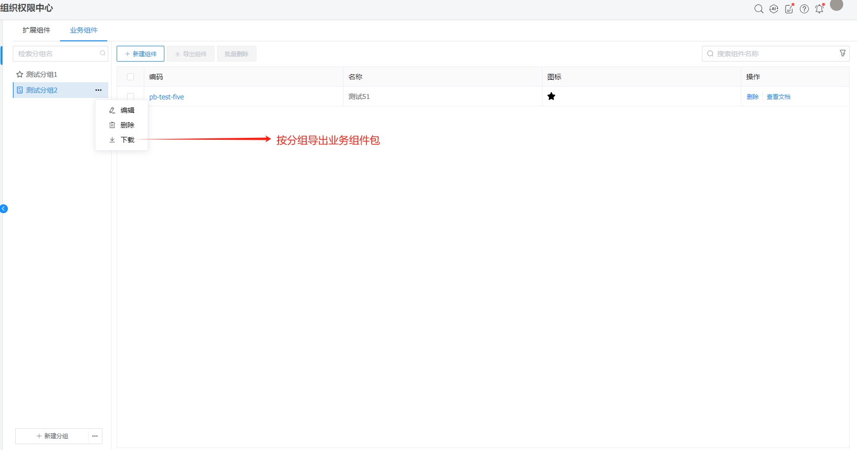 1.新建分组或者选择已存在分组,在分组下新建业务组件。