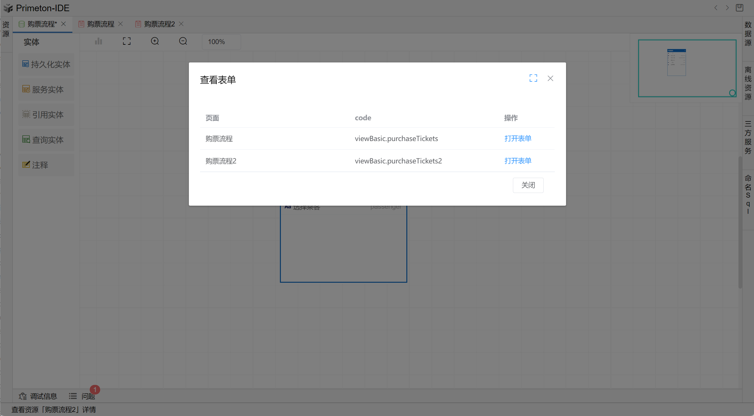 点击“打开表单”按钮,迅速跳转到与选定实体相对应的页面,可以进行数据查阅。