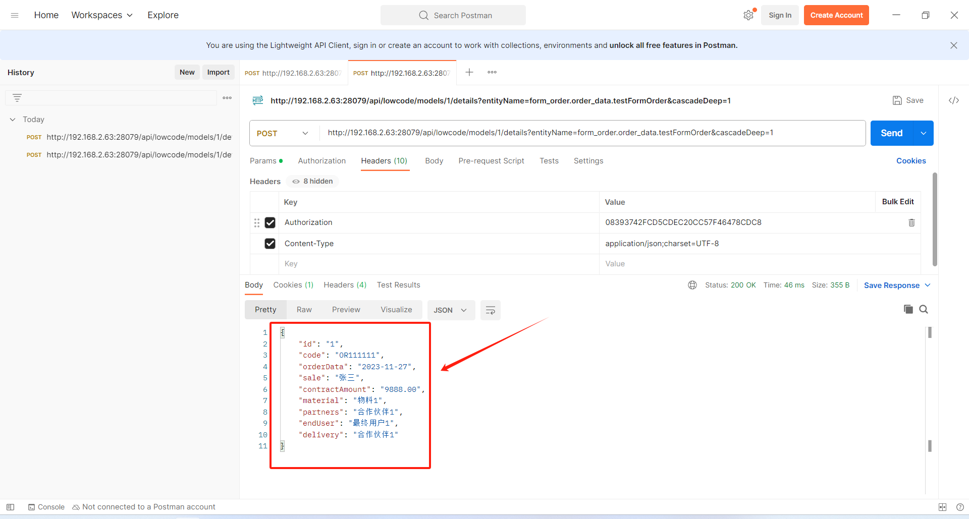 通过接口调用工具可以调用接口获取实体数据,以PostMan为例: