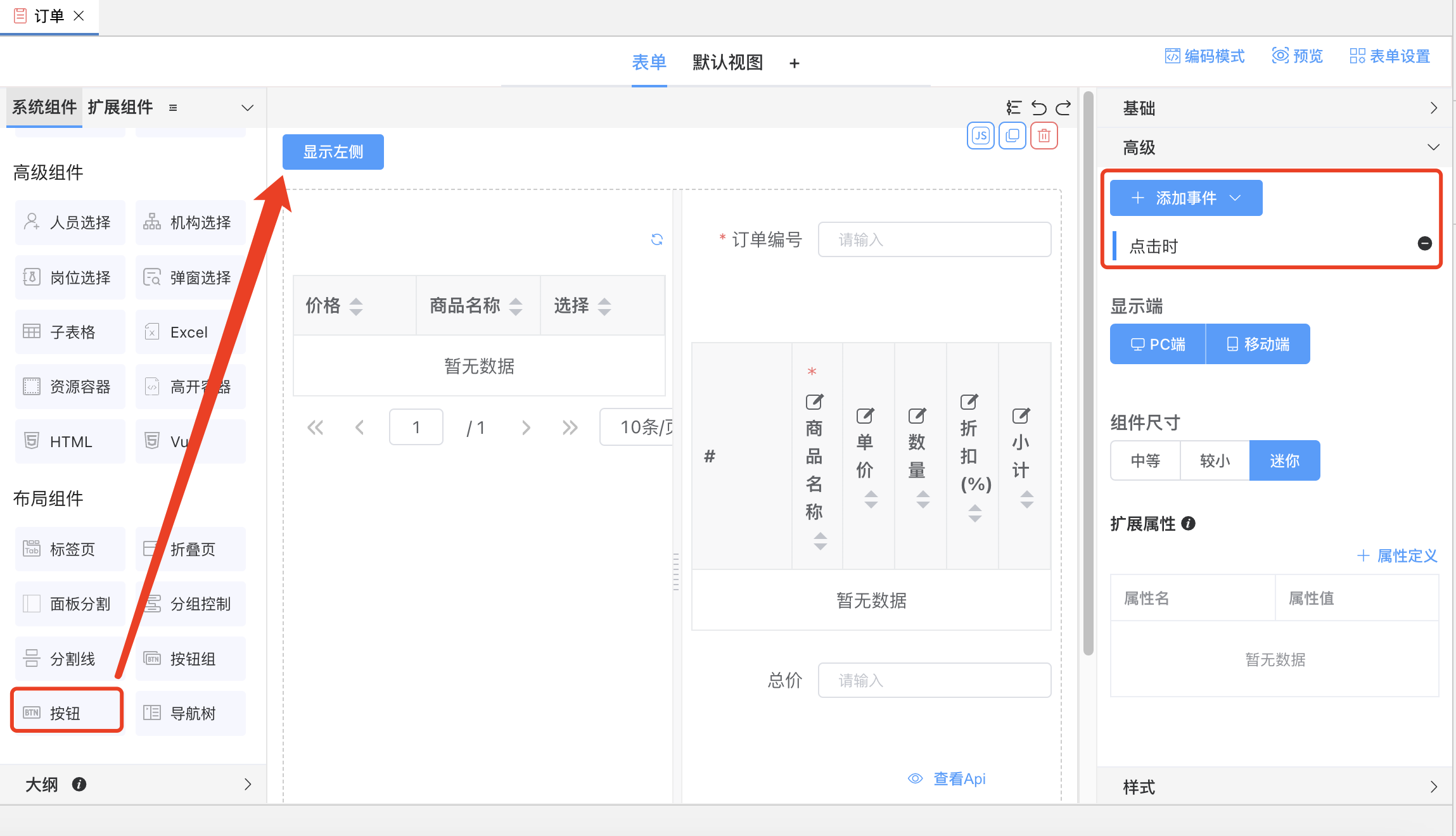 添加显示左侧按钮,并为其添加事件,将v_show赋值为'left'。