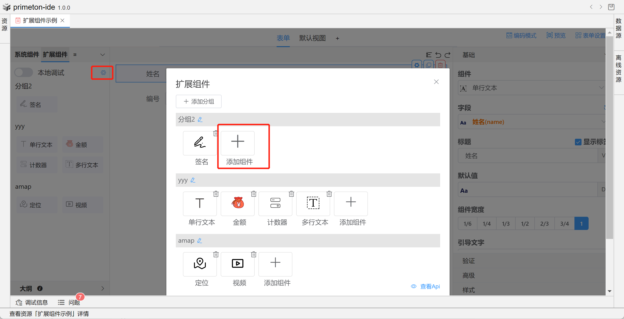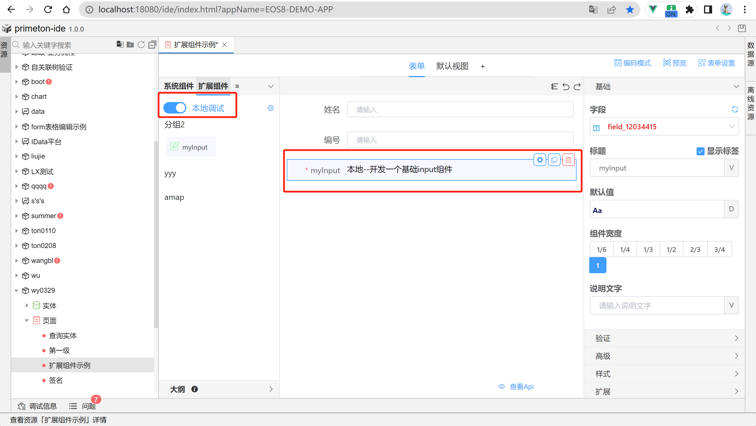 成功连接本地组件扩展项目后,可进行本地开发。本地项目更改保存后会实时更新到表单。