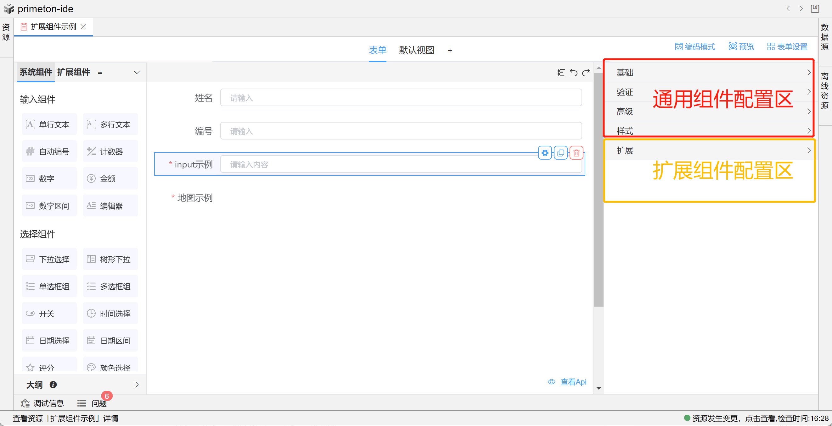 主要分为两部分:通用组件配置区和扩展组件配置区