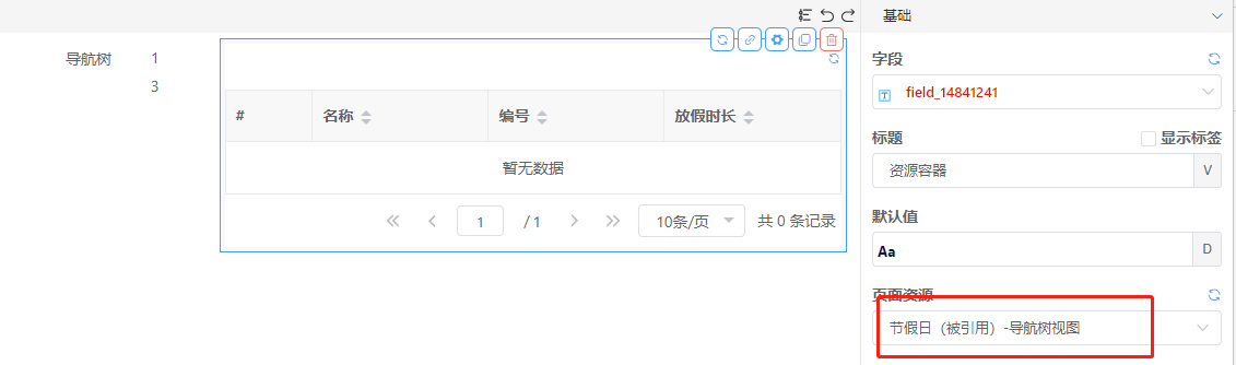 步骤4. 在被引用表单页面,添加并配置导航树视图