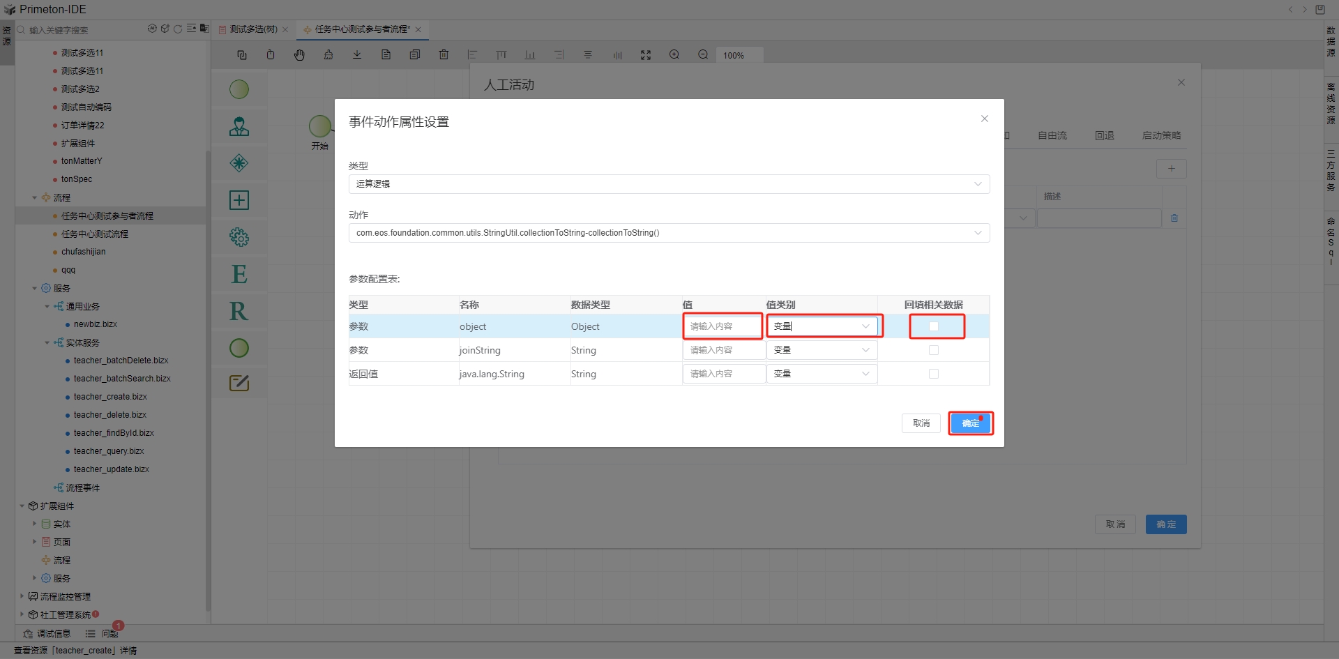 事件动作是指触发事件被触发时,业务流程引擎触发的动作。支持EOS服务、逻辑流和运算逻辑。