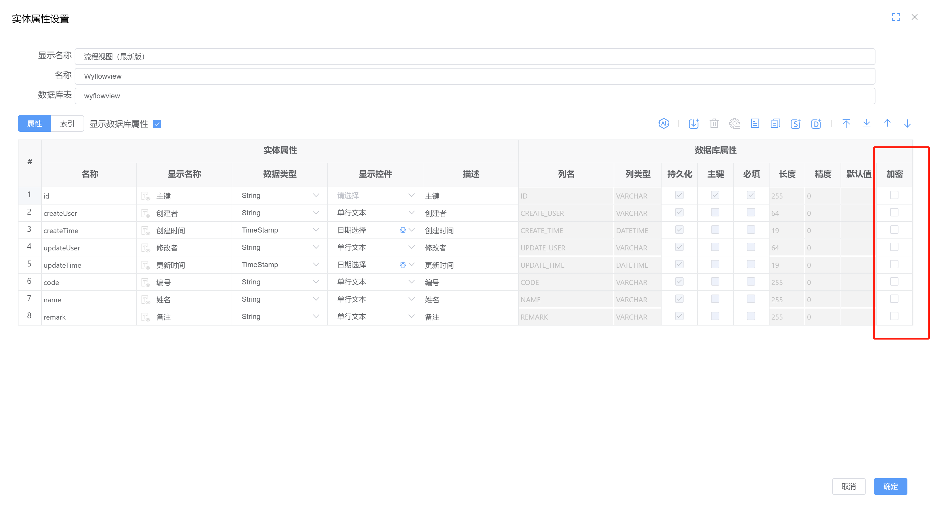 在实体属性的配置中,可以配置实体的基本信息以及实体属性信息。用户可以添加字段并进行相应的配置。这些字段可以包含各种数据类型和属性,根据实际需求进行自定义配置。