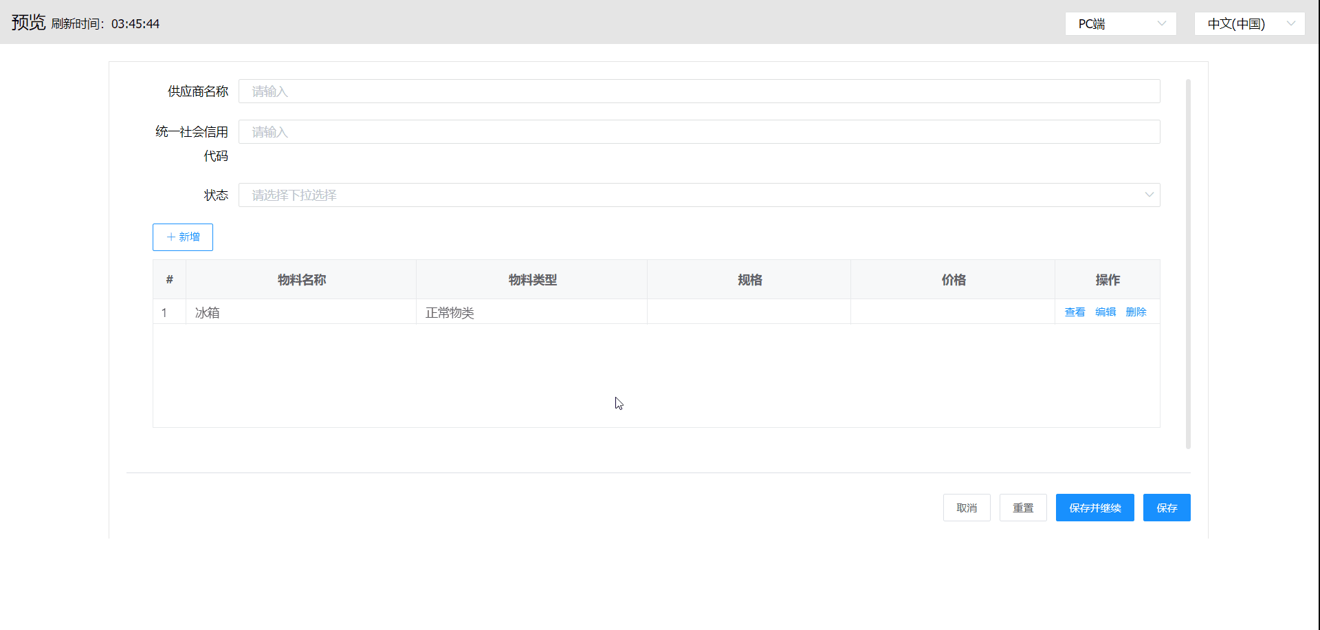右键供应商实体生成表单,此时会自动生成物料子表单。