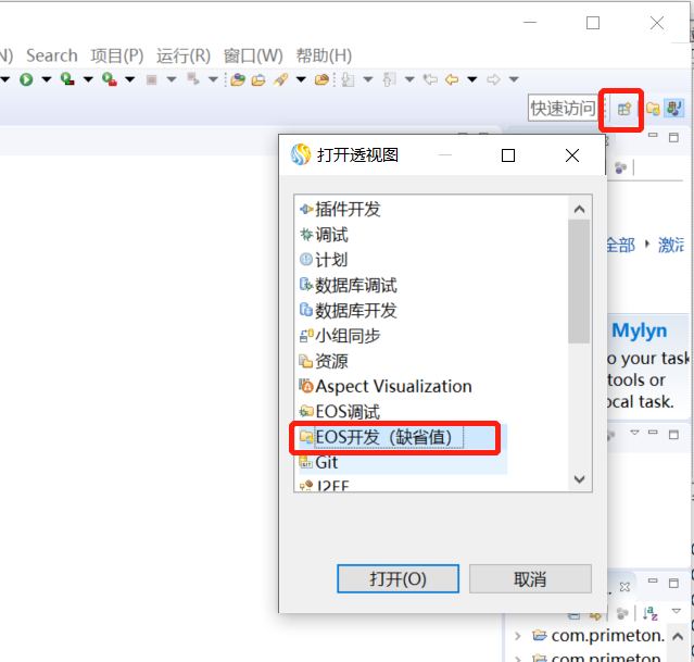 启动eclispe,右上角透视图上选择EOS开发。