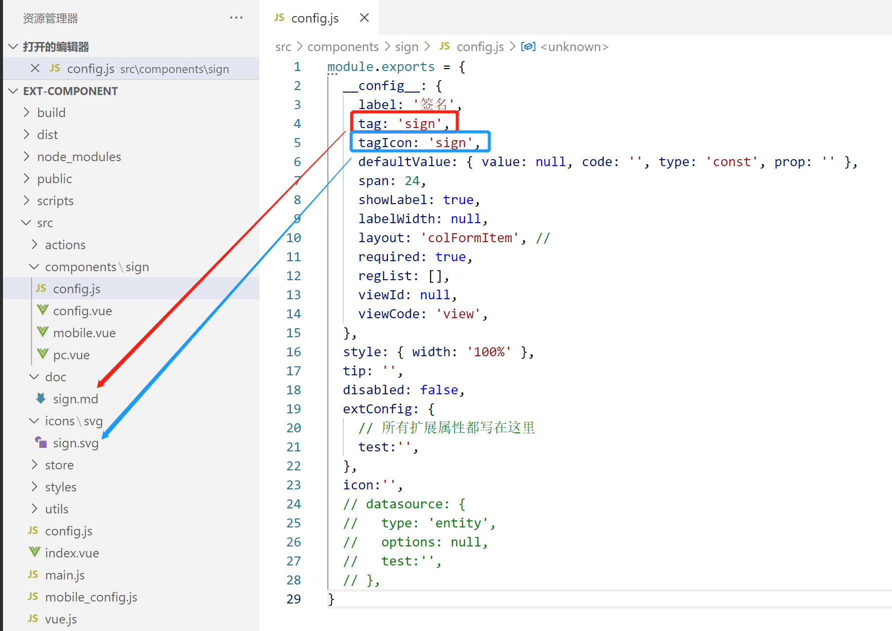 可在config.js中extConfig下配置组件单独使用的参数