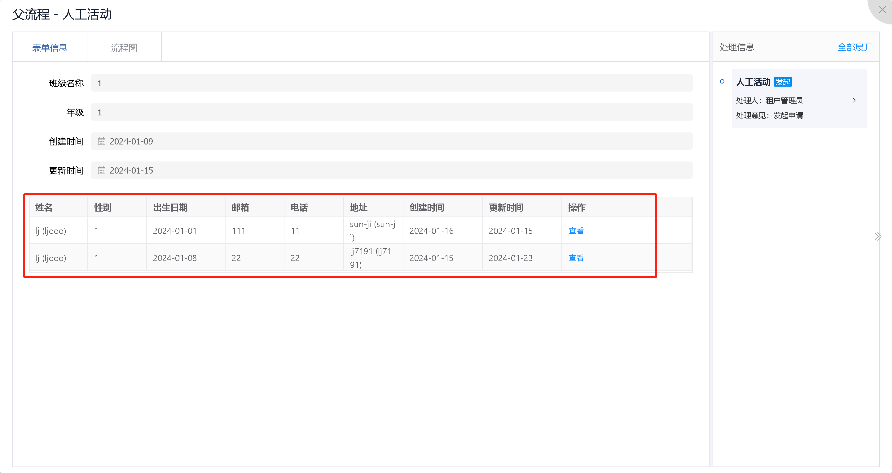 如下图,根据子实体students列表总数创建2个子流程实例。
