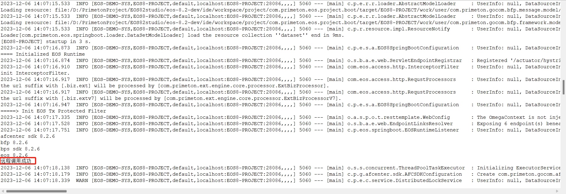 启动后可以看到日志中输出远程调用成功。