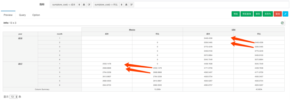 环比, 同比统计属于高级统计操作, 交互稍微复杂些