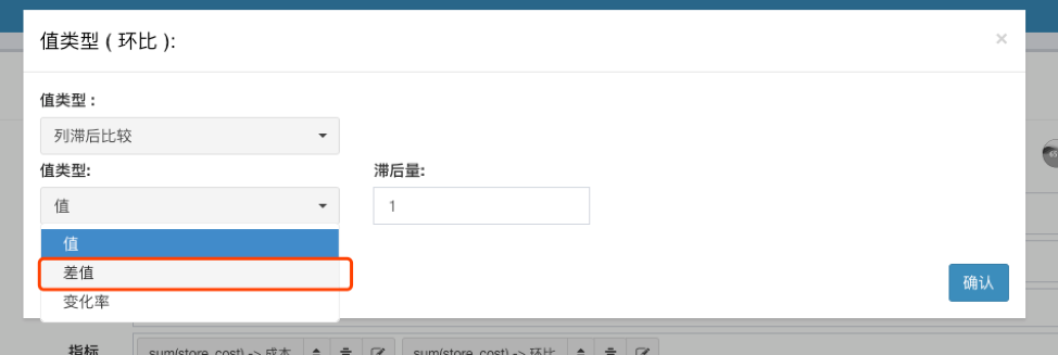 点击值类型里面更多操作, 弹出高级对话框, 值类型选择滞后比较
