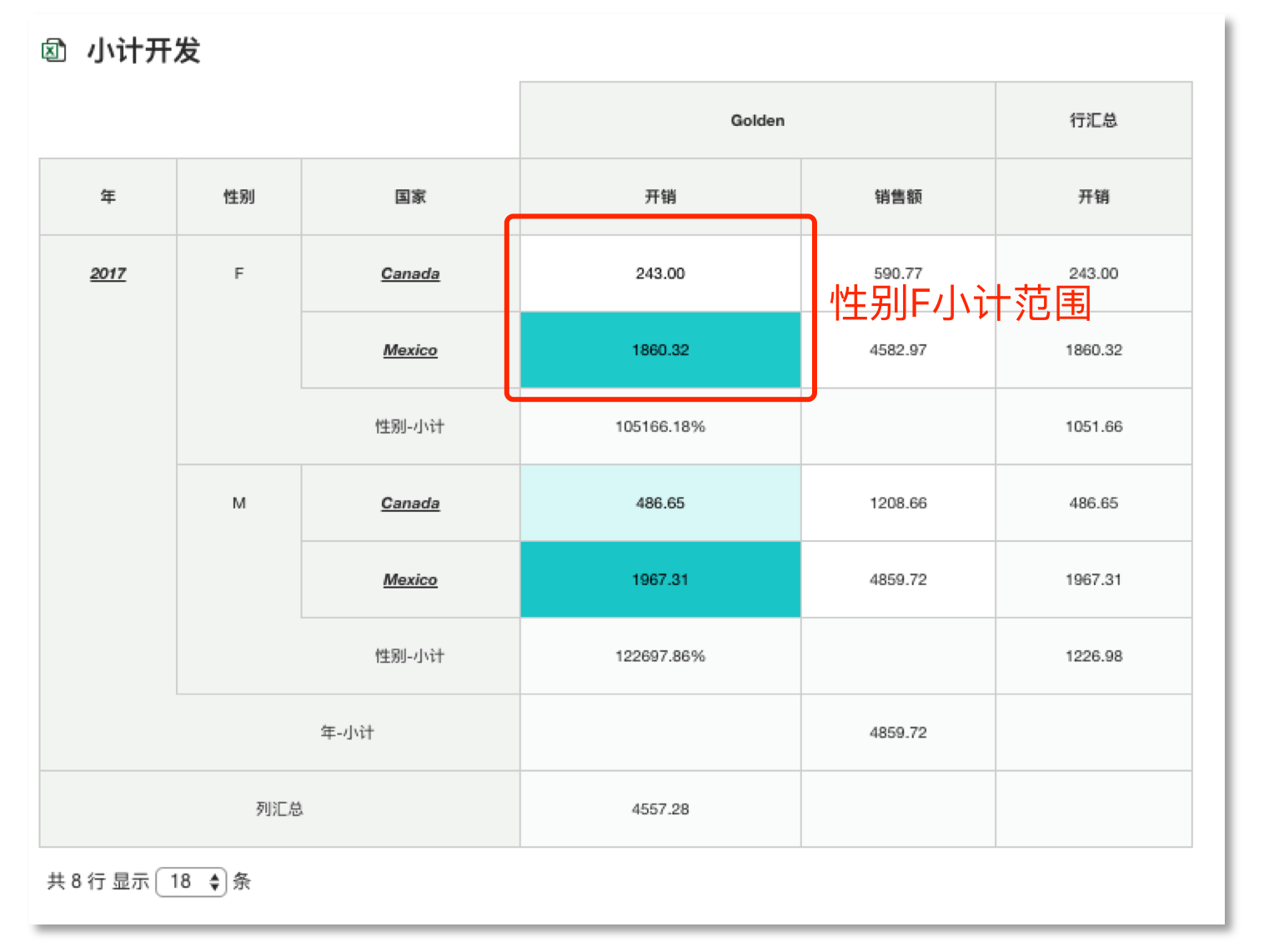 在此之前行/列汇总、小计、合计汇总计算仅针对表格上已有的数据(视图数据/表面数据)进行二次处理从而实现汇总功能