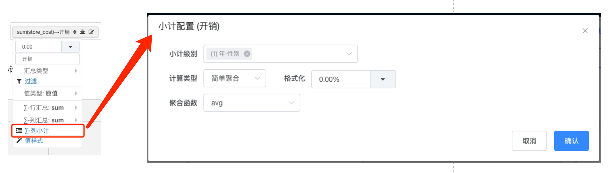 2 跳出弹出框, 值类型依旧选择列占比, 然后子分组选择年对应的字段year