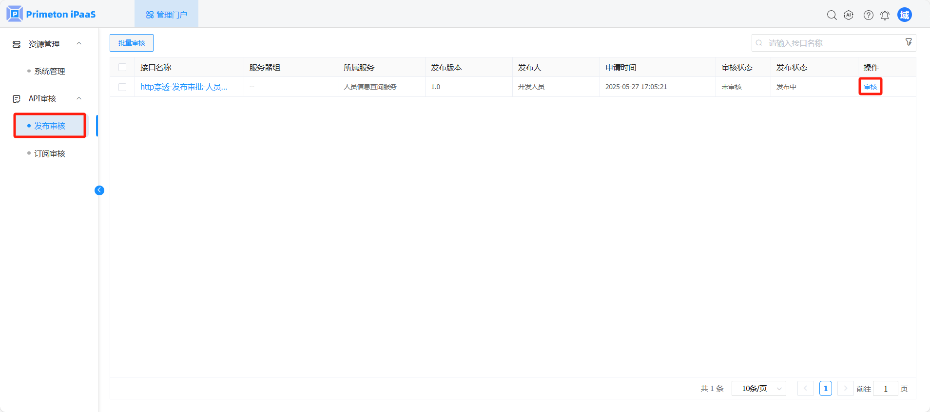 # 接口发布审核(域管理员审核)