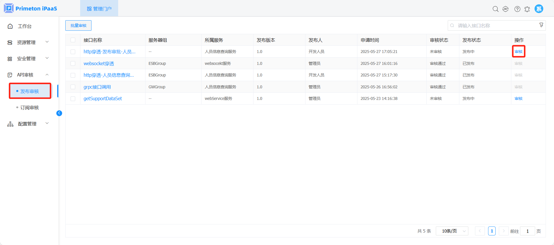 # 接口发布审核(系统管理员审核)