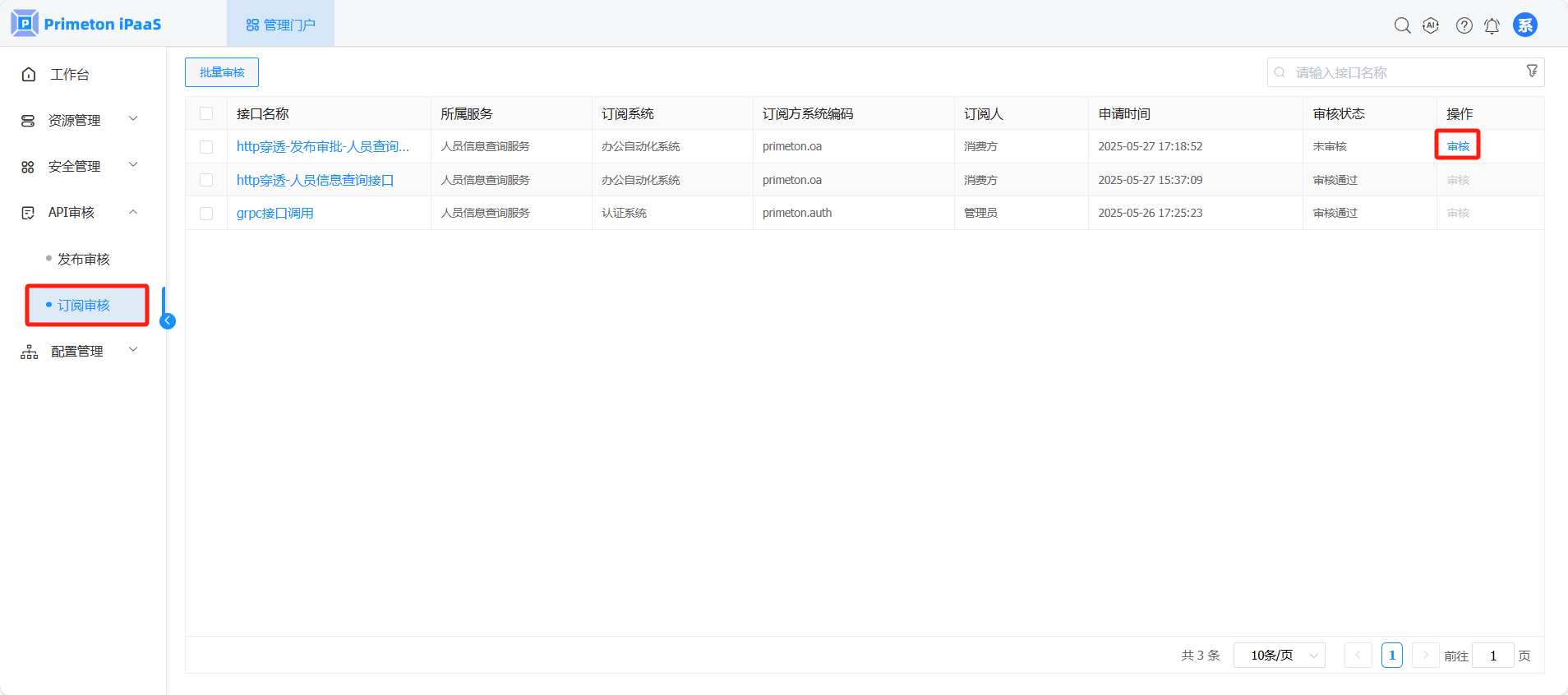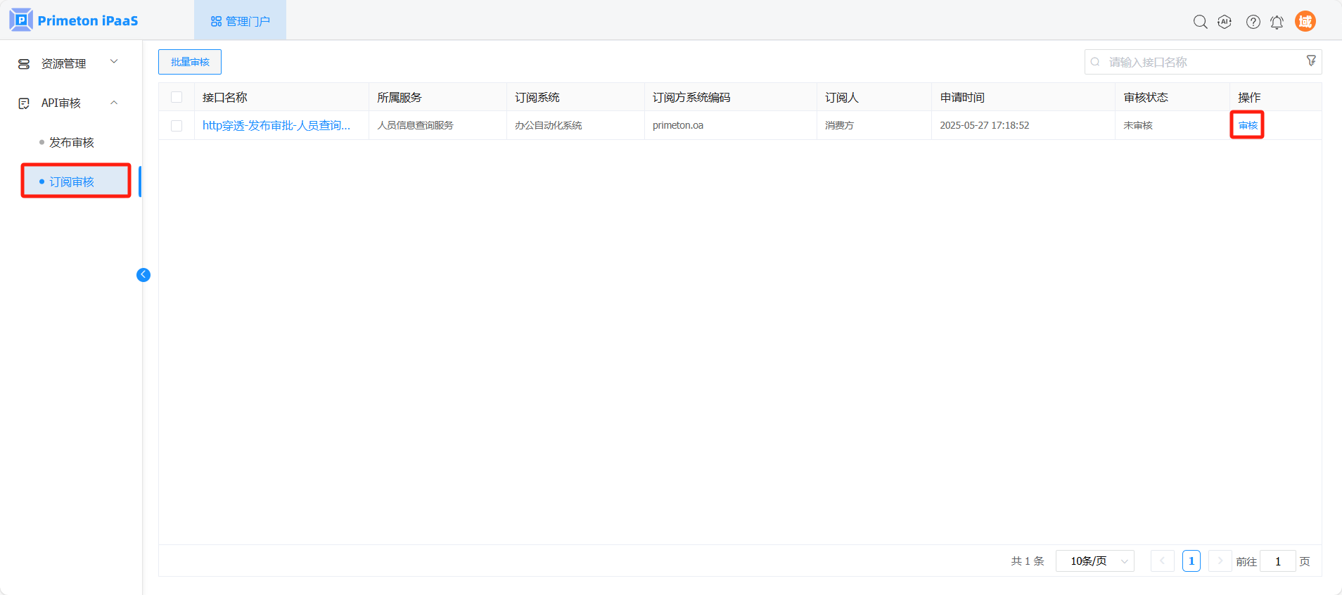 # 接口订阅审核(系统管理员审核)