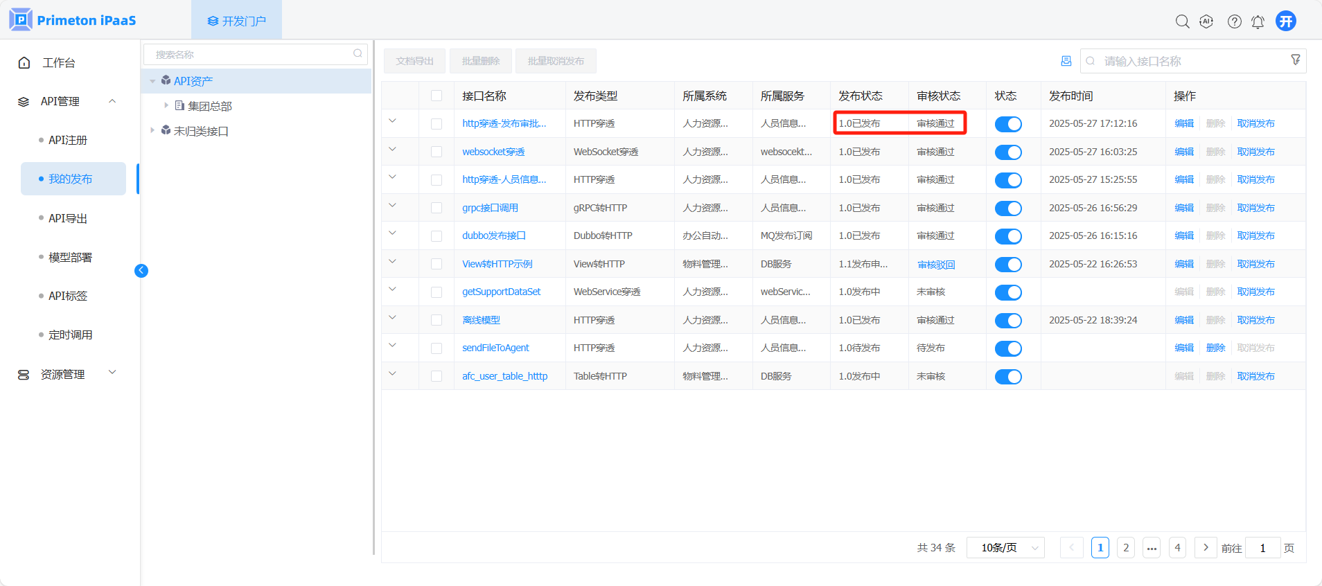 系统管理员审核通过后,此时接口状态还是“发布中”,需要等待域管理员审核。