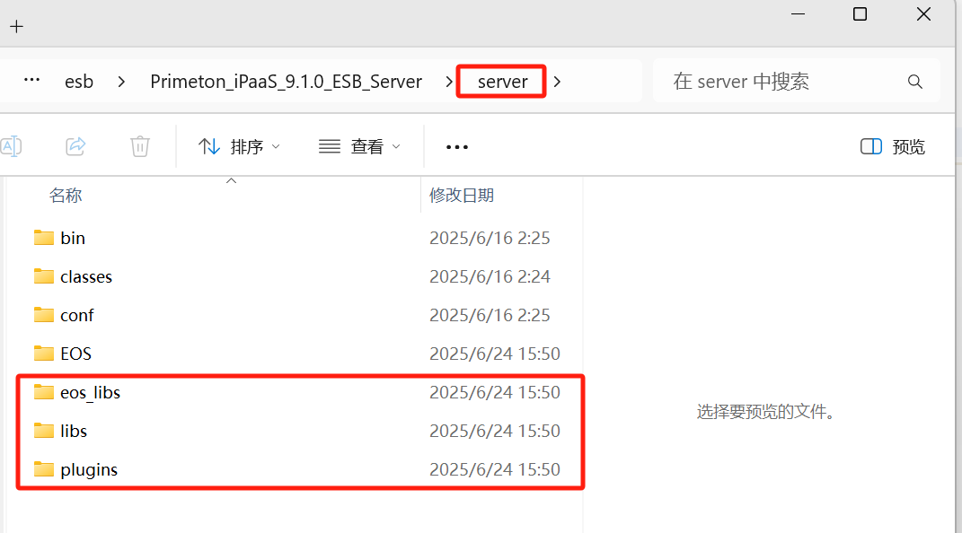 解压安装包 Primeton_iPaaS_9.1.0_ESB_Server.tar,获取解压后server目录下 eos_libs、libs、plugins 三个目录及其目录下的Jar文件。