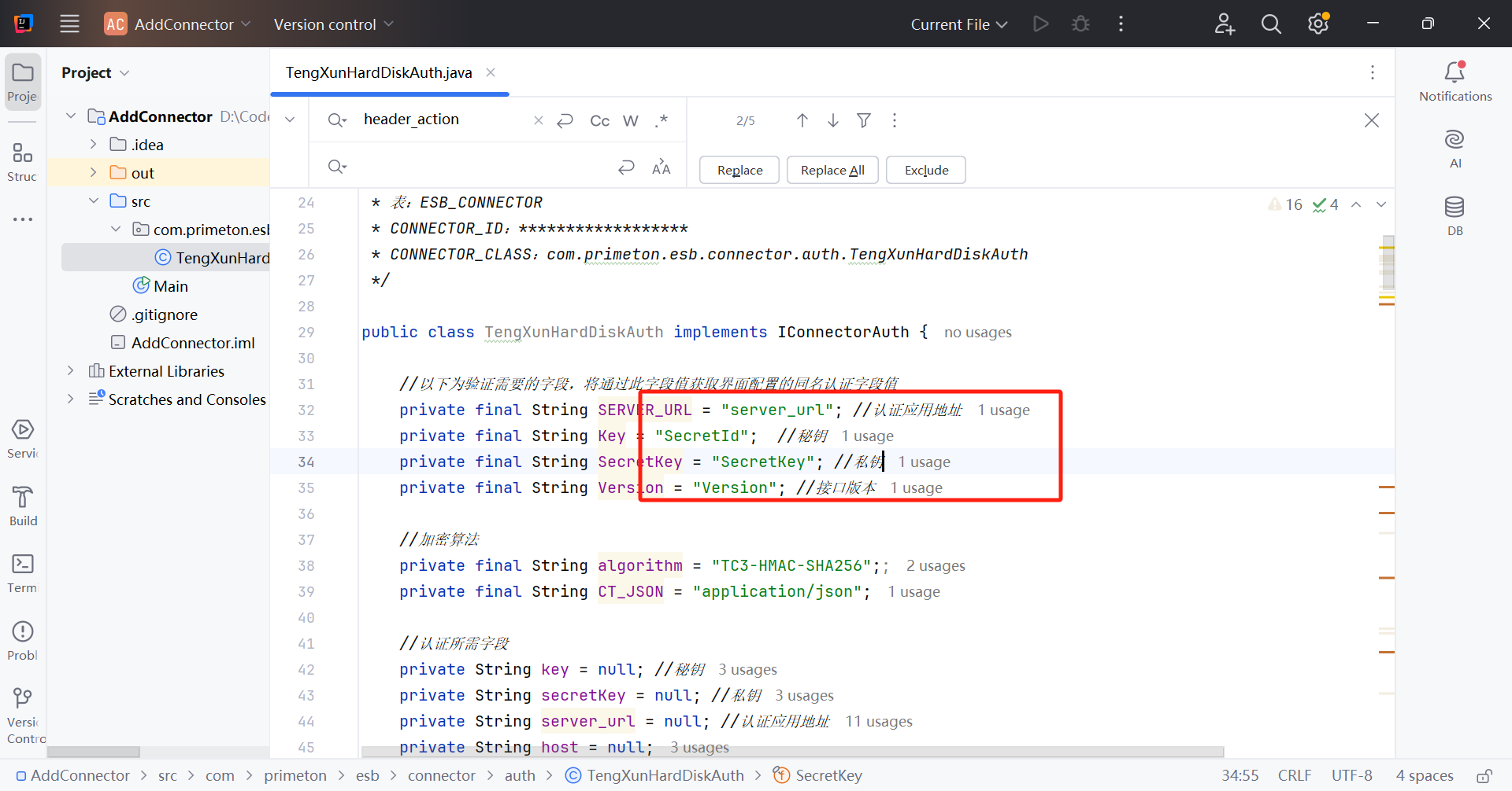 注意 : 认证字段的标识需与认证类中定义的用于获取界面配置的字段值相同,此场景中需与以下字段保持一致。