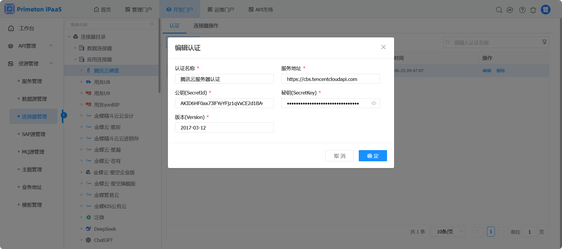 5:腾讯云硬盘的认证参数可在腾讯云硬盘控制管理中心获取,地址:https://console.cloud.tencent.com/cam/capi