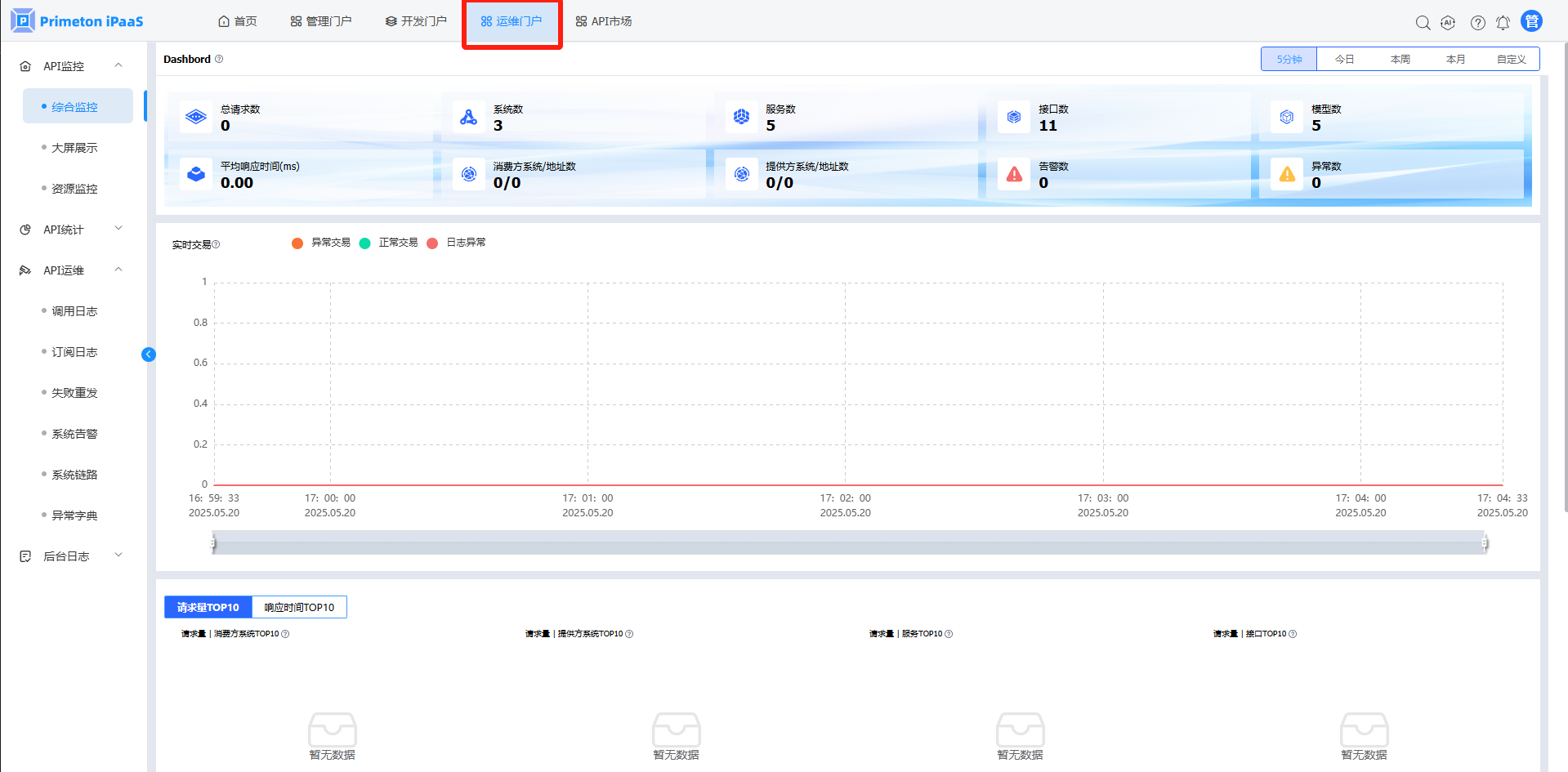1.使用manager账号(默认密码:000000)登录系统,点击运维门户,进入运维门户页面。