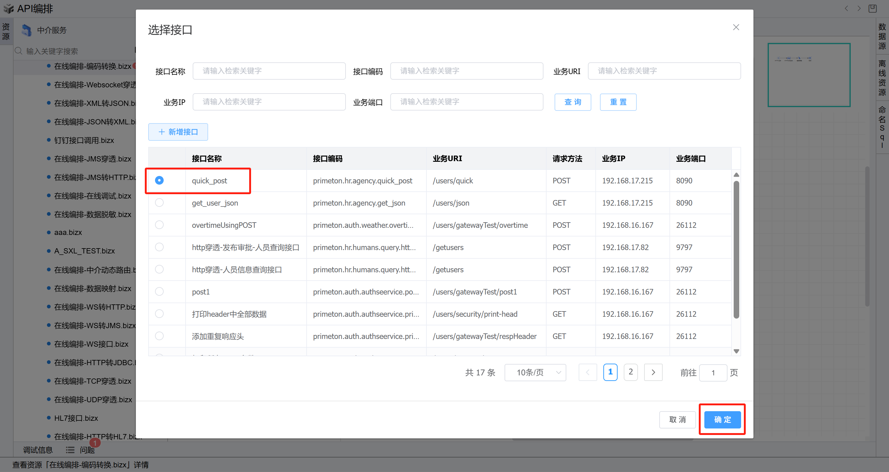 • 1.1. 或者点击中介服务,点击API编排按钮进入在线编排页面。如下图: